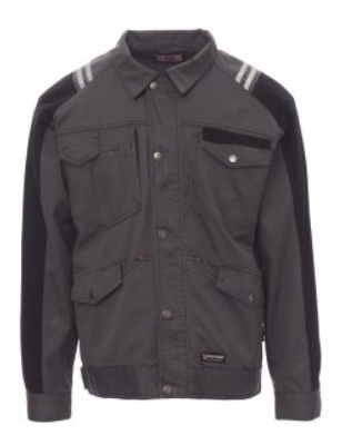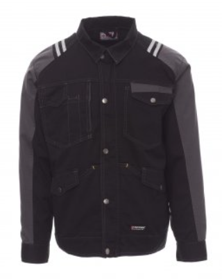 Chaqueta no acolchada con aplicaciones y pespuntes bicolor en contraste; corte estilizado tipo vaquero, cierre delantero con cremallera y tapeta de cobertura con botones, puños y cintura ajustables con botón; dos bolsillos delanteros modelo canguro con tapeta LOCK SYSTEM y botón metálico, dos bolsillos a la altura del pecho, uno de los cuales con LOCK SYSTEM, soporte para tarjeta de identificación extraíble y plegable, soporte para teléfono móvil; ribete reflectante en la espalda; bandas reflectantes en los hombros para más seguridad y visibilidad. Interior sin forrar.