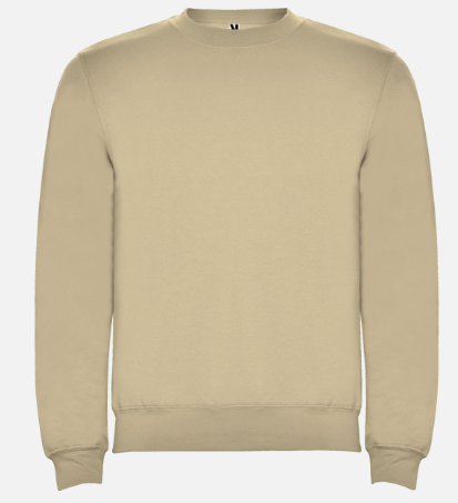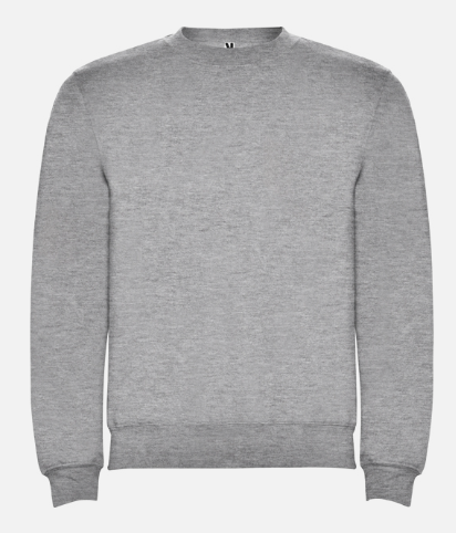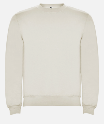 Sudadera unisex cuello redondo. Cuello, puños y cinturilla en canalé 2×1 con elastano. Cubrecosturas del mismo tejido.